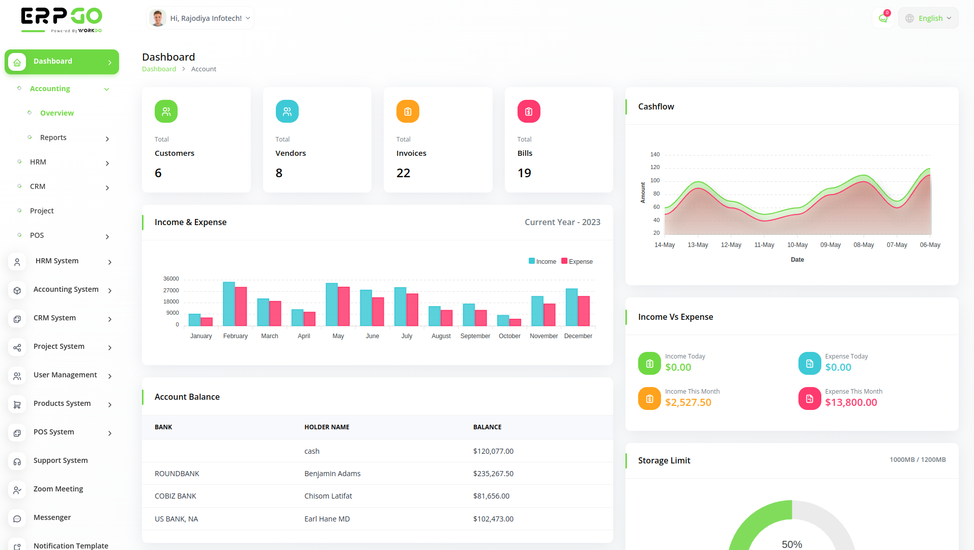 ERPGo All In One Business ERP With Project, Account, HRM, CRM & POS